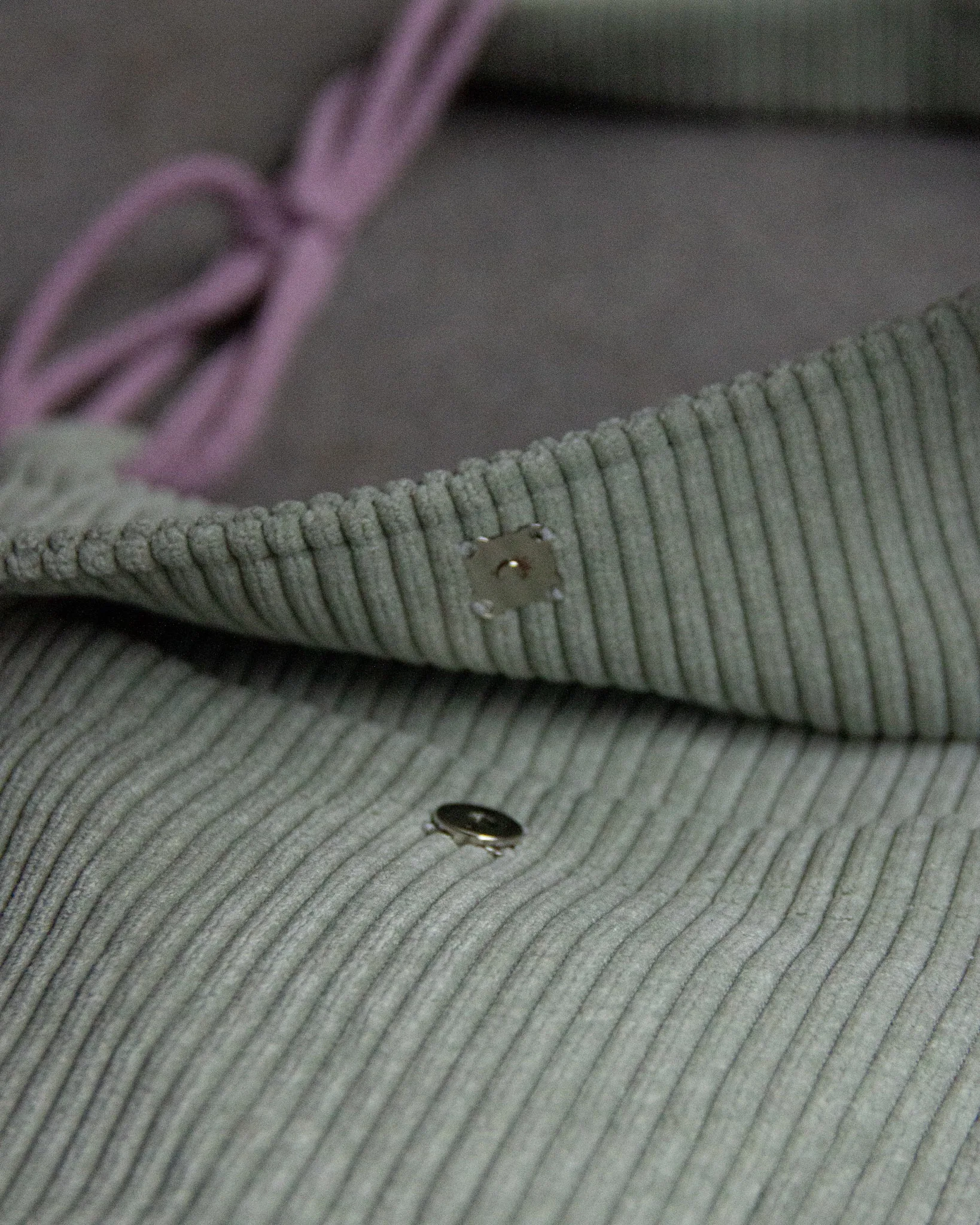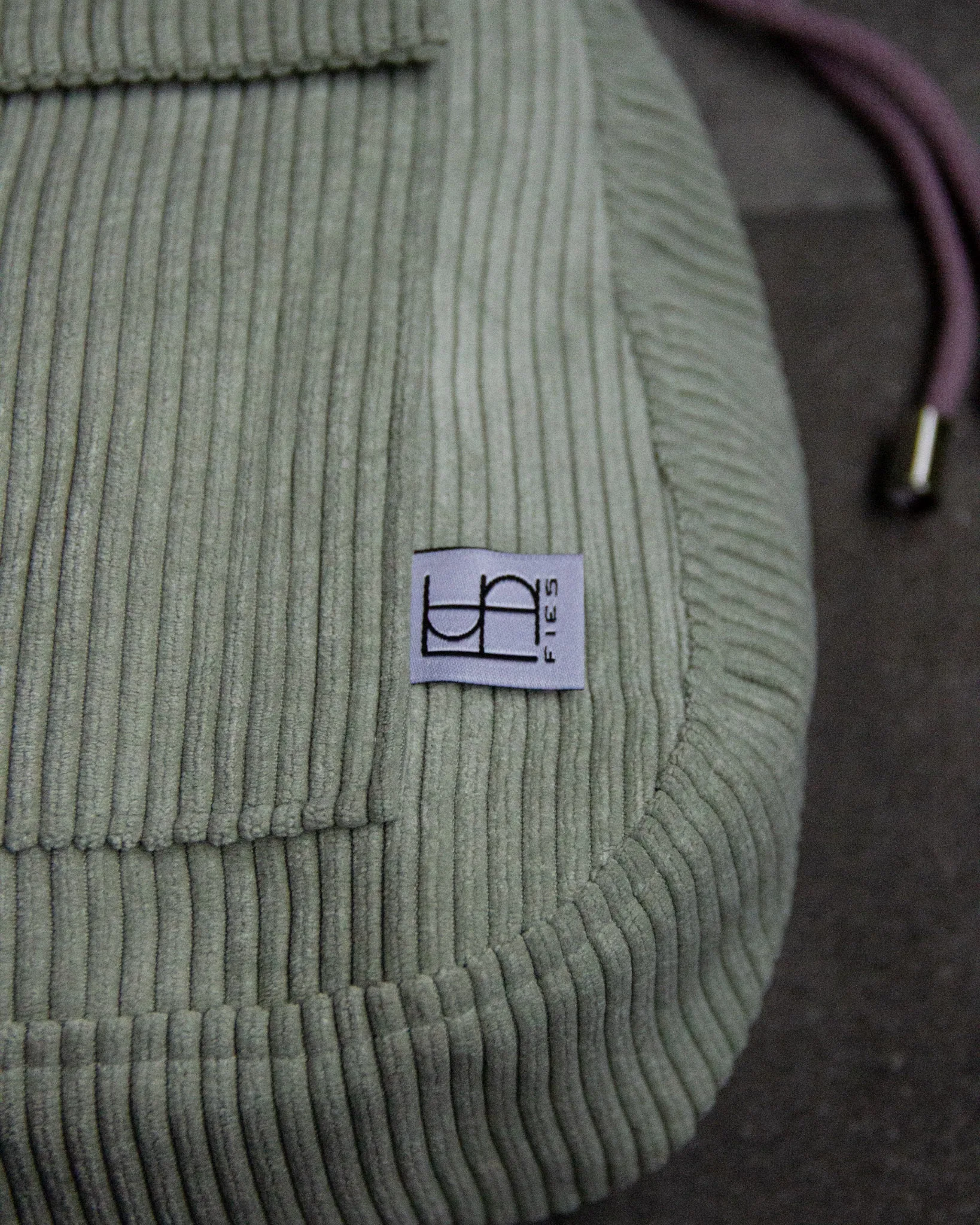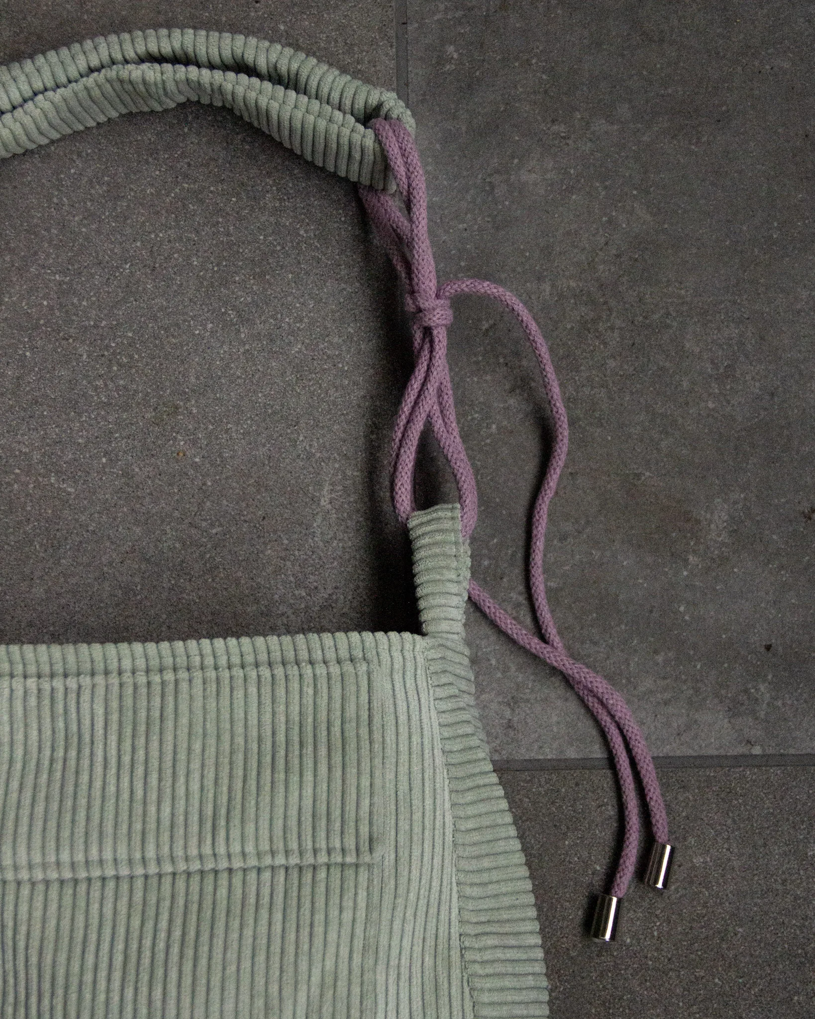 Der hochwertige Cord in einem lindgrün kombination mit einer lässigen lilafarbenen Kordel verleiht der Tasche einen coolen, auffälligen Look. Ideal für alle, die besondere Farben lieben.