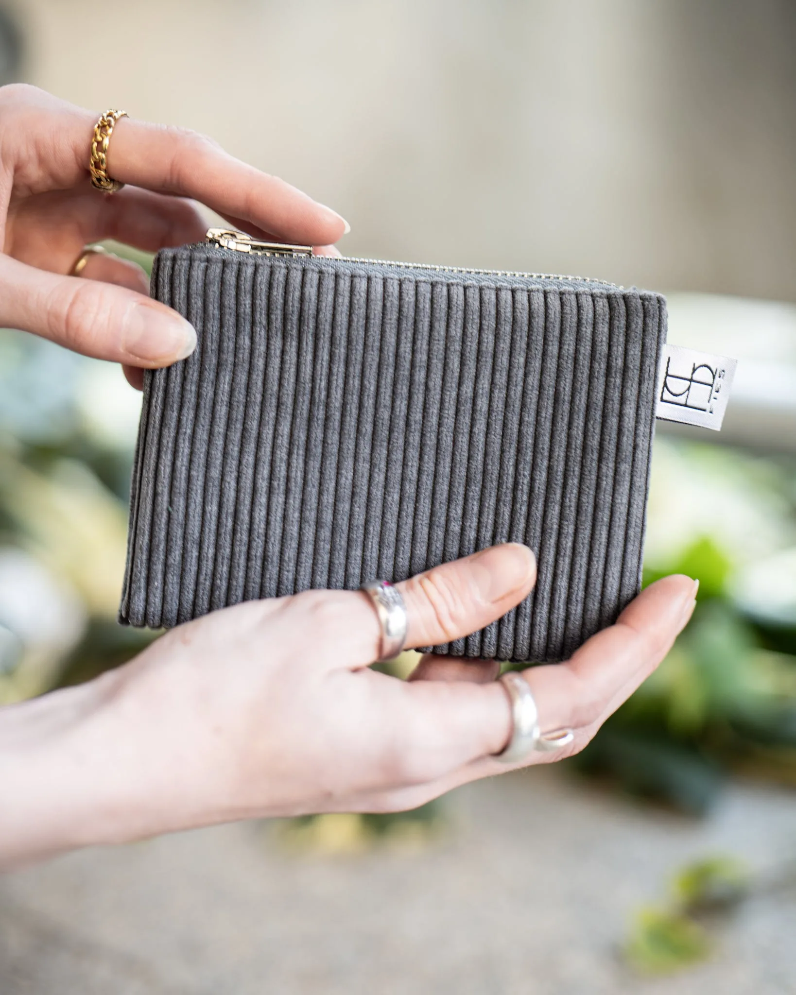 Dieser kleine Geldbeutel aus hochwertigem Cordstoff in einem Grau ist ein praktischer und zugleich stilvoller Begleiter für den Alltag. Der weiche Cord verleiht dem Portemonnaie eine moderne Optik, perfekt für alle, die schlichte Designs mit besonderem Material lieben.