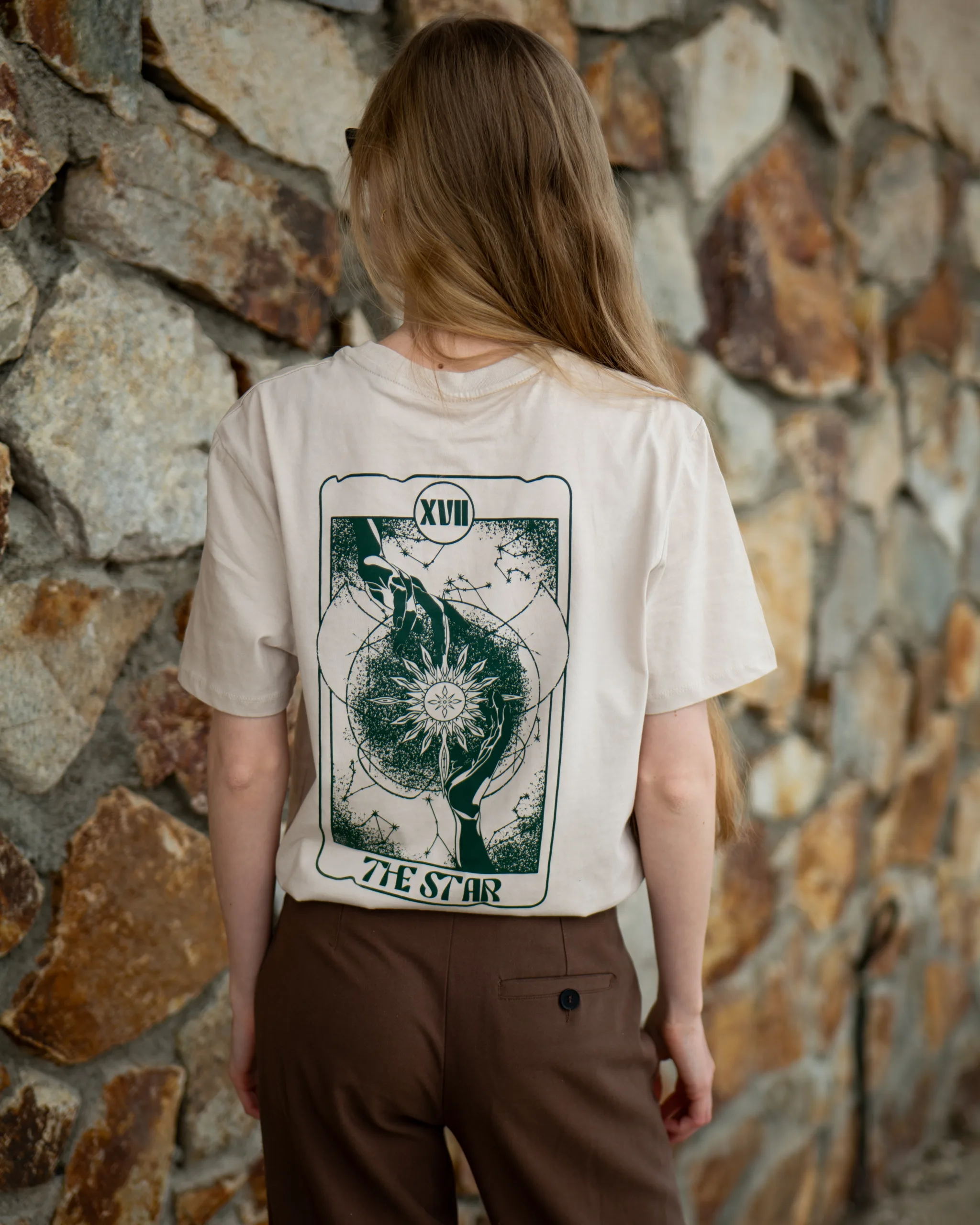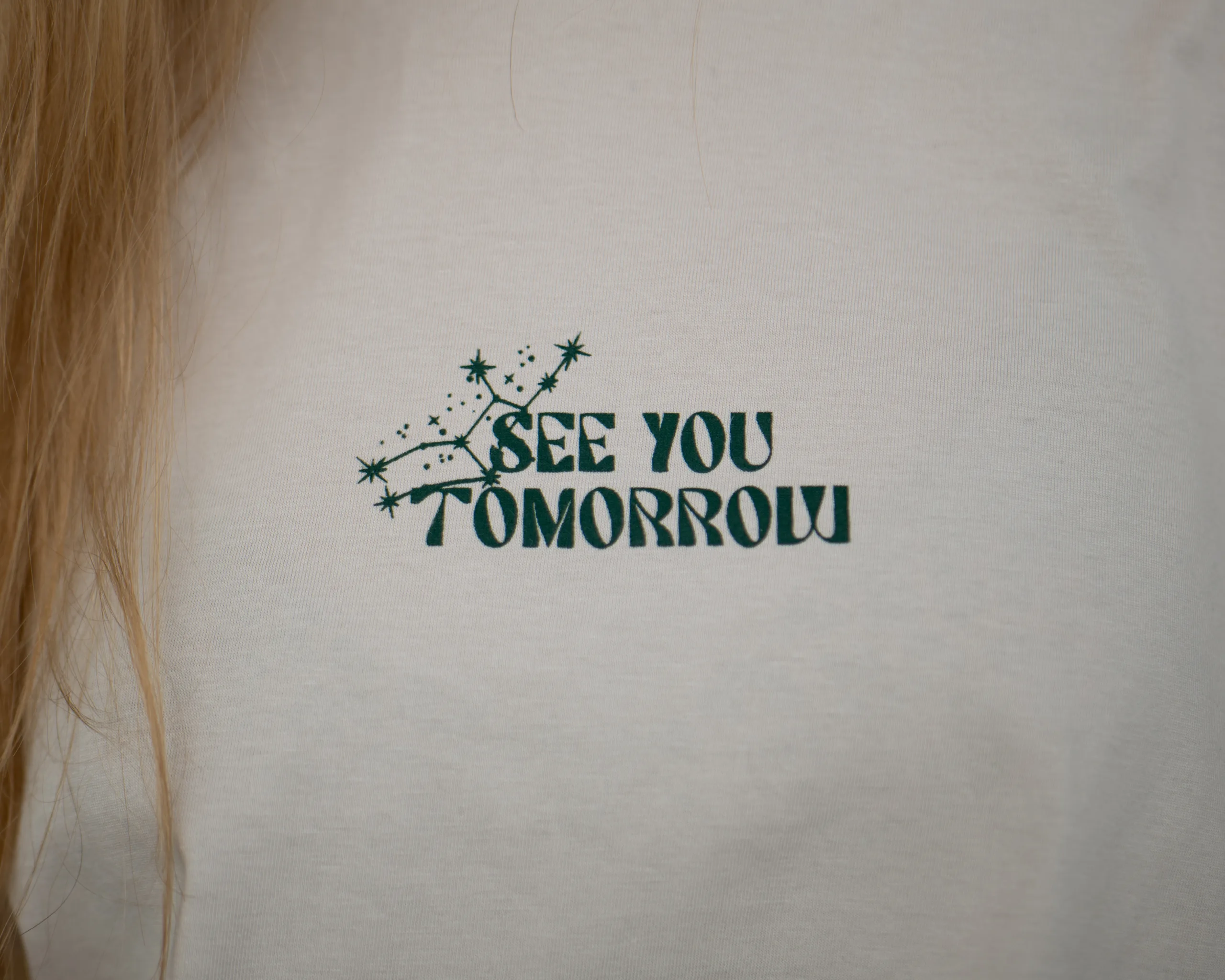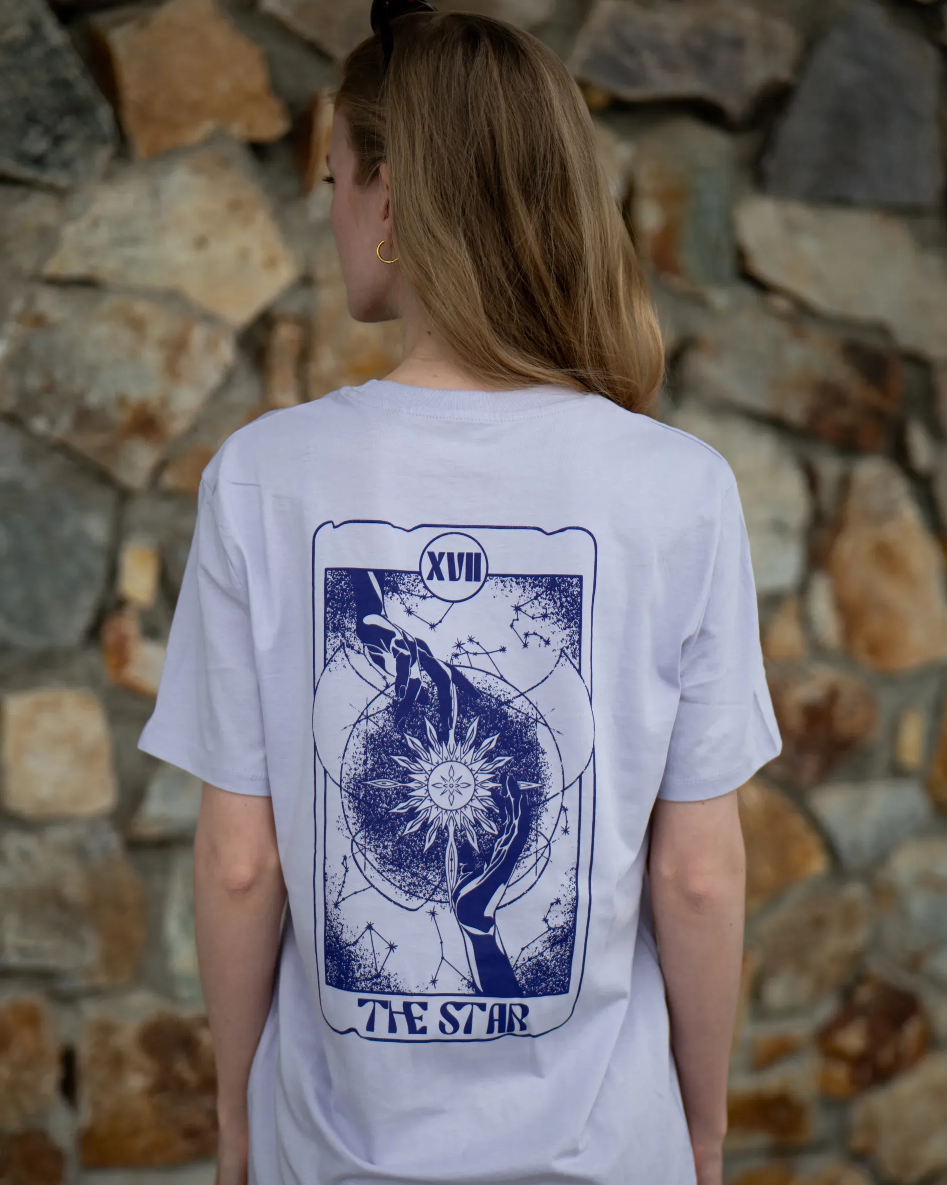 Vorne dezent mit „SEE YOU TOMORROW“-Schriftzug, hinten die Tarotkarte The Star.